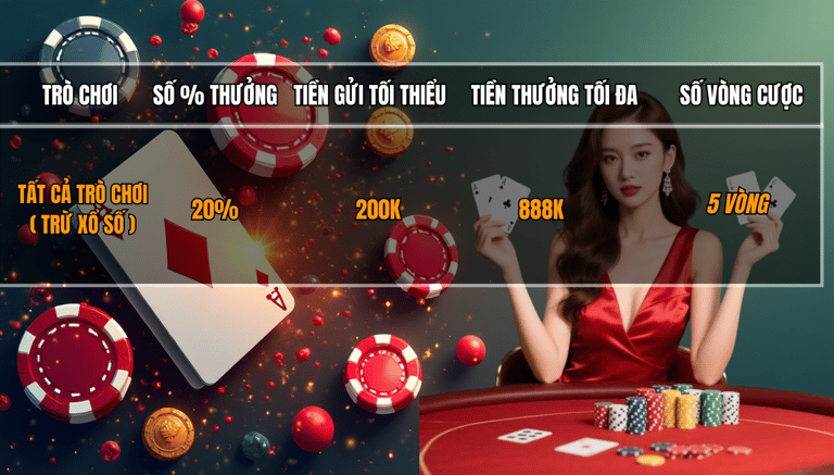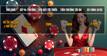 - Nạp 500K VND + Tiền thưởng 20% = 100K VND
